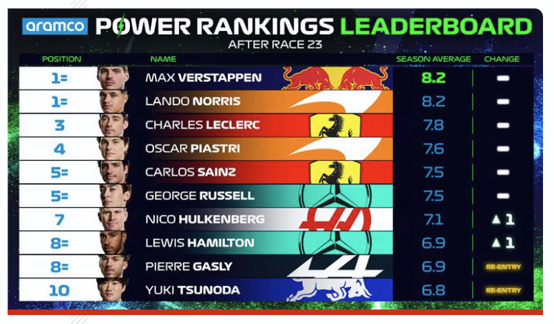 FA: 「メディアでこのランキングを見ることがある。でも全く無意味だと思う。自分が何位にいるのかも知らない。トップ10を見ても、僕の名前はない。ワールドドライバーズチャンピオンシップで9位にいるのに、7番目か8番目、あるいは9番目に速い車で戦っているんだ。」