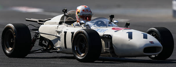メキシコGPの決勝前、角田裕毅がサーキット内のショーランでホンダRA272をドライブ。ファンで埋まったグランドスタンドの前でV12の咆哮を響かせた。