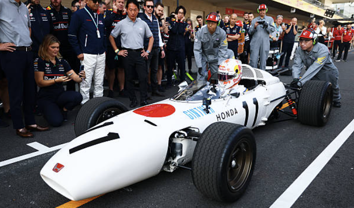 この走行は、レッドブルとホンダの“最後のメキシコGP”となる2025年大会を記念して行われた演出で、角田は日本の国旗を想起させる白いボディに赤い円を配したRA272のステアリングを握った。RA272は1965年のメキシコGPでリッチー・ギンサーがF1初勝利を挙げた名車として知られ、ホンダのF1史に刻まれた象徴的なマシンだ。